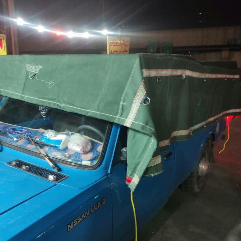 چادر ماشین نیسان برزنتی 9 لایه صد در صد ضد آب با قلاب و دم اسبی سایز 4 در 5