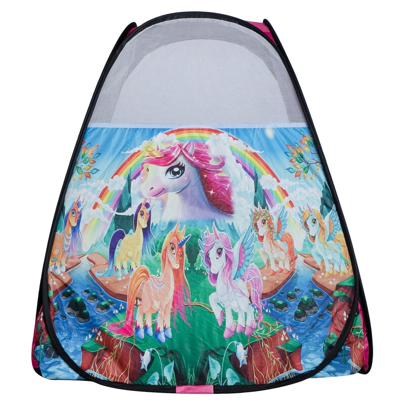 چادربازی چادر کودک خیمه کلبه تاشو فنری سیسمونی تولد کادو طرح یونی کورن پونی کد2
