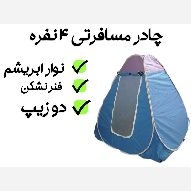 چادر مسافرتی4 نفره تاشو فنری سفری جنس برنو با کیفیت سه پنجره زیپ درشت کد5