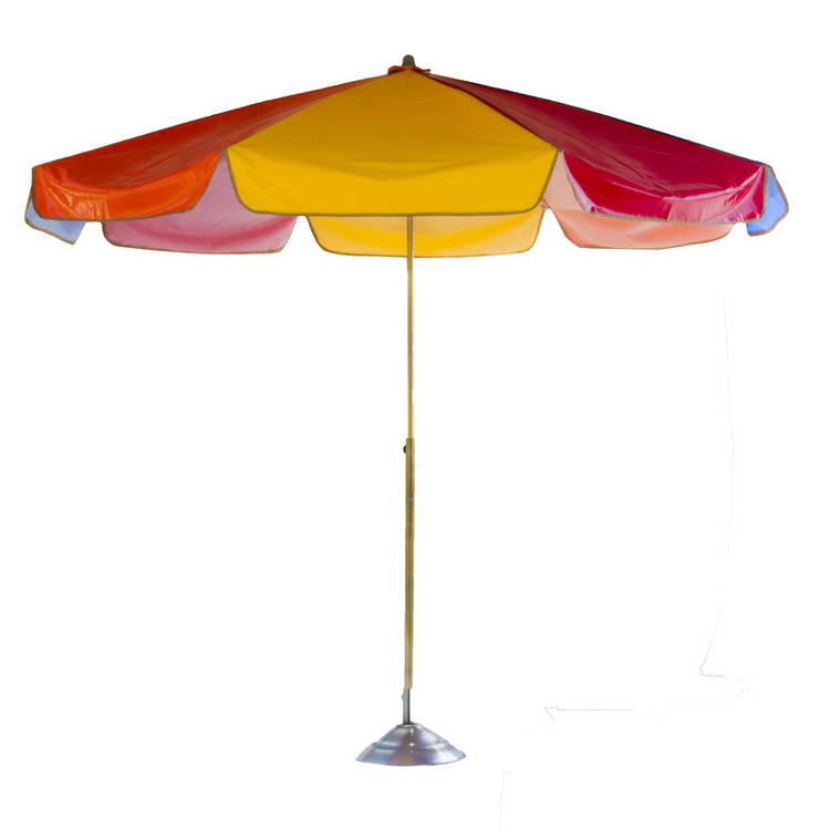 اگر قصد دارید اوقات فراغتتان را در بعدازظهرهای تابستانی در حیاط یا تراس خانه سپری کنید یا بهتازگی رستوران یا کافیشاپی افتتاح کردهاید که امکان سرو غذا و نوشیدنی در فضای باز را دارد، به یک یا چند سایهبان نیاز پیدا خواهید کرد. با تهیهی سایهبان میتوانید برای یک تا چند ساعت از تابش نور خورشید در امان باشید و در فضای باز یک لیوان چای یا غذایی دلچسب نوشجان کنید. پارچهی استفادهشده برای این سایهبان حالت نایلونی دارد تا حتی هنگام بارش باران نیز خیس نشوید اما در بارش طولانی مدت ضدآب نیست. طول یا قطر کلی پارچهی این محصول برابر با 250 سانتیمتر یا دو متر است که فضای نسبتا خوبی را پوشش میدهد. برای بدنهی اصلی یا پایهی سایهبان از لوله آبکاری شده آهنی سایز 22 استفاده شده است تا استحکام و مقاومت لازم را دارا باشد و گذشت زمان باعث شکستن و آسیب دیدنش نشود. قسمت انتهایی میلهی پایه به قطعهای آهنی متصل میشود که حالت دایرهایشکل دارد. داخل این قسمت آهنی را میتوان با سیمان پر کرد تا سنگین تر شود. با سنگینکردن این پایهی آهنی، سایهبان در اثر وزش ملایم باد، واژگون نخواهد شد.