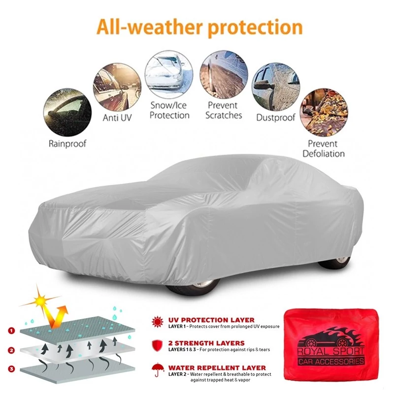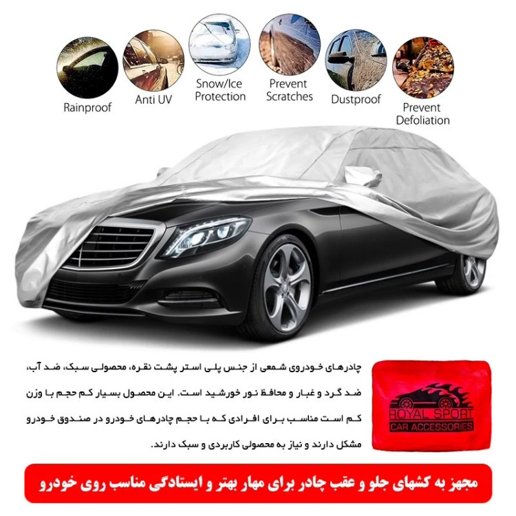 اگر خودرو شما به صورت مداوم در معرض نور آفتاب و شرایط بد آب و هوایی مانند برف و باران باشد، این امر منجر به آفتاب سوختگی رنگ خودروها و یا زنگ زدگی بدنه می شود. این نوع چادر های خودرو دارای خاصیت های ضد آب، ضد خش، ضد آفتاب و شست و شوی آسان هستند. در واقع یک چادر ضدآب خودرو برای آنهایی که نگهداری و حفظ ظاهر خودرو برایشان اهمیت دارد، ضروری است. چادر ضدآب خودرو یک راه ساده و موثر برای حفاظت بدنه ی خودرو در برابر خط و خش و تغییر رنگ است. چادر ضد آب خودرو از یک لایه ی مخصوص بهره می برد که مقاوت آن در برابر نفوذ آب را تا حد زیادی بالا برده است. علاوه بر این یکی دیگر از مزایای چادر ماشین ضد آب این است که میتواند ما را از هزینه هایی که برای کارواش پرداخت میکنیم تا همیشه اتومبیل تمیزی داشته باشیم این چادر خودرو به سفارش برند رویال اسپرت تولید شده، در رده بندی کیفیت GRADE A Plus و در بسته بندی برند رویال اسپرت قرار گرفته به شما ارائه می شود.
