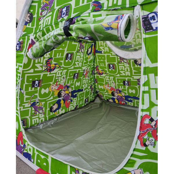 چادر بازی نوجوان مدل بن تن دارای یک درب و یک پنجره توری دار می باشد. این محصول دارای زیپ دنده 5 است. یک قلاب برای نگهداشتن درب کار شده است. ابعاد 140x140 ارتفاع 140 می باشد دارای کیف ست هم طرح نیز می باشد