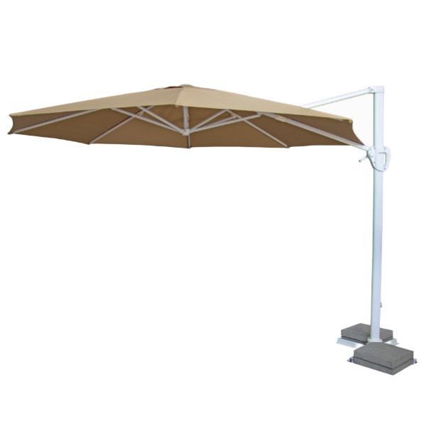 چتر سایبان پایه کنار مدل 360 درجه از جنس بدنه الومینیوم ضد زنگ و پارچه نانو ضد اب تولید شده است.این چتر با قابلیت ویژه چرخش به طرفین و همچنین امکان زاویه دار شدن چتر در 3 حالت جزو جدیدترین چترهای تولیدی می باشد.پارچه این چتر در رنگهای متنوع و سفارشی امکان تولید دارد. دقت کنید که رنگ بدنه چتر سفید یا سیاه طبق رندوم و برنامه ریزی تولید می باشد. اما رنگ چتر طبق موجودی ایجاد شده مشخص می باشد. این چتر با قابلیت جمع شدن امکان جابجا کردن بسیار راحت را فراهم می کند.این مدل دارای چهار عدد بتن قالبی بر روی پایه ها جهت ایستایی بهتر محصول می باشد.این مورد باید در مورد استفاده از این چتر مدنظر قرار بگیرد و ان جمع کردن چتر در هنگام وزش باد جهت جلوگیری از اسیب چتر می باشد.سرگیر چتر در حالت افقی و باز شده 2 متر و ارتفاع کلی چتر 280 سانت می باشد.