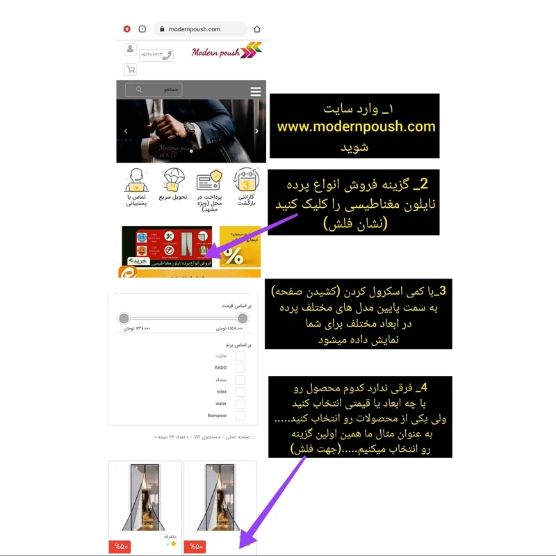 استفاده از درب های پلاستیکی /طلقی (مدرن پوش) برای جلوگیری از ورود سرما و حتی گرما به داخل ساختمان میباشد و یکی دیگر از مزیت های این پرده مانع شدن از ورود حشرات موذی به داخل ساختمان و اتاق و یکی از بهترین روش ها برای رهایی دائم از شر این موجودات موذی و حتی بیماری زا می باشد. مزیت درب پلاستیکی/طلقی (مدرن پوش) این است که علاوه بر دارا بودن مگنت های مغناطیسی(آهن ربا) قوی به راحتی نصب شده و حتی در صورت عدم نیاز میتوانید این درب را از روی چارچوب نصب شده جدا کنید و هر زمان که نیاز شد مجددا به سادگی آن را نصب کنید.این محصول از جنس طلق شفاف بوده و نوار حاشیه آن به رنگ طوسی میباشد که به جذابیت پرده اضافه کرده است.دقت کنید که روی پکیج های جدید این محصول جعبه وجود دارد و روی جعبه ادرس سایت و نام مدرن پوش مطابق تصاویر سایت درج شده است