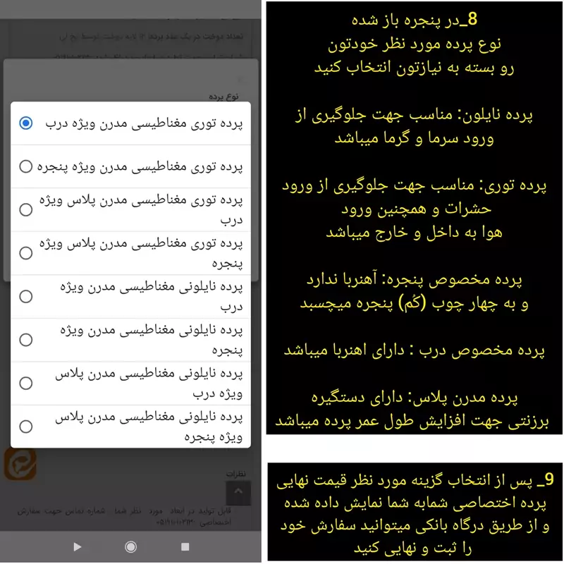 کنار پرده و آهنربا ها (برعکس بیشتر همکاران که از گاند و نوعی پارچه توری استفاده میکنند) برزنت دوزی شده است