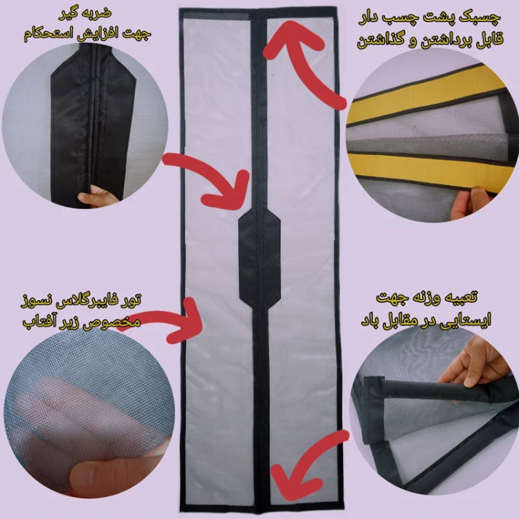 پرده توری آهنربایی 70در200 سانت مدل جدید (ضمانتی) آهنربا یکسره ضربه گیردار، توری مگنتی تور مغناطیسی درب توری آهنربادار