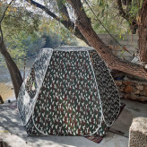 چادر مسافرتی شش ضلعی جنس خوب برنو دارای ۲ پنجره توریدار زیپ شماره ۵ و درب زیپ دو سر شماره ۱۰ دارای یک عدد هواکش دارای سایبان کف ضخیم تفلون و کیف ضخیم ست چادر وزن ۱۷۰۰۰گرم ابعاد ۱۲ متر مربع ارتفاع ۲۲۰ قطر کیف ۸۵ سانت