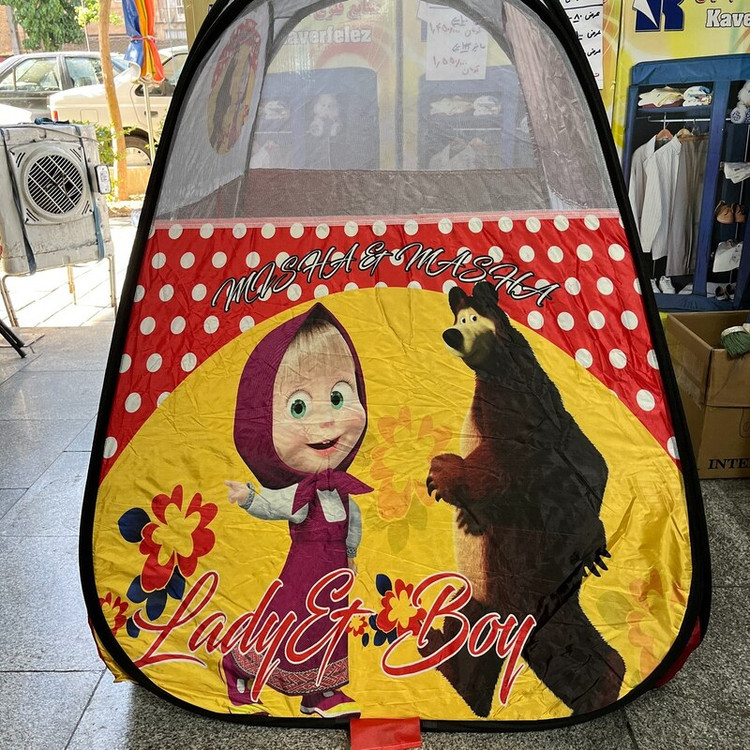چادر بازی کودک مدل فنری با جنس شمعی طرح ماشا و میشا مناسب بازی کودکان کد5