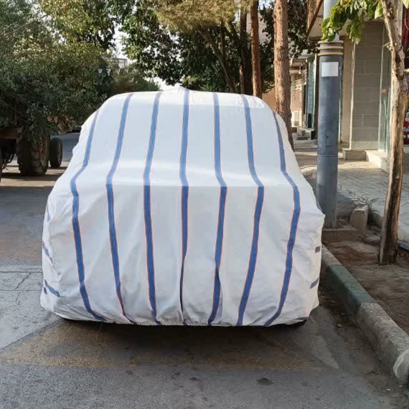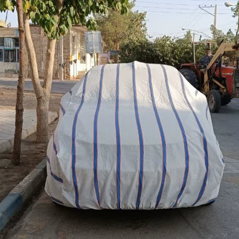 برزنت خط دار نخ پنبه درجه یک دوخت محکم و زیبا کش قوی در دو سمت سپر ها سگک پلاستیکی انتی یووی برای جلوگیری از دزدیده شدن مقاومت بالا در برابر تابش مستقیم نور افتاب جلوگیری از افتاب سوختگی رنگ ماشین پوشش کامل ماشین تا رکاب در سه سایز متنوع سایز لارج مناسب انواع پراید تیبا انواع هاچبک و .... سایز ایکس لارج مناسب 405 پارس ساینا و ... سایز دو ایکس لارج مناسب دنا، شاهین ، تارا ، ازرا ، اریزو و ...
