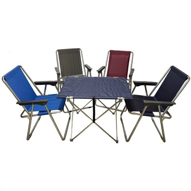 ست میزو صندلی تاشو دسته مبلی مسافرتی 4 نفره دارای 8 فنر و فوم دار متریال ها: پارچه سومیت، فلزضد زنگ , فوم و تسمه ی تقویت کننده اگر می خواهید به همراه دوستان و یا خانواده به دل طبیعت سفر کنید قطعا همراه داشتن میز و صندلی سفری مهمترین اقداماتی است که انجام دهید. در این خصوص برای شما . ست میز صندلی تاشو مسافرتی 4 نفره فوم دار دسته مبلی را برای شما تهیه کردهایم تا این نیاز را به خوبی برطرف کنید و بتوانید تا حد ممکن هزینههای خود را کاهش دهید