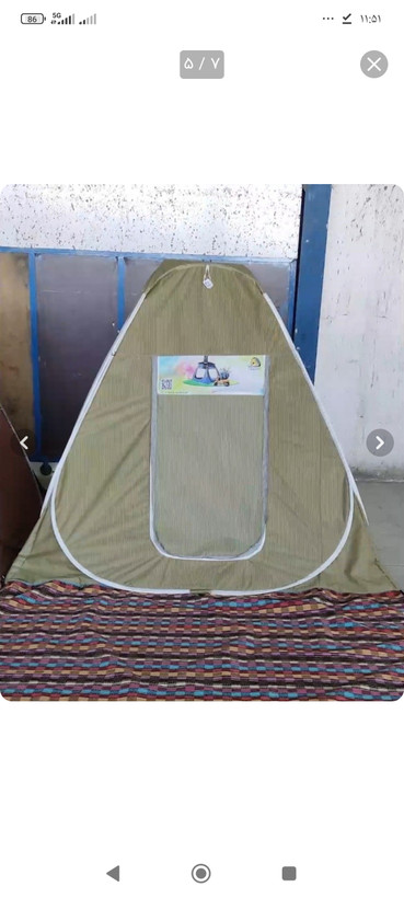 دارای حلقه و کیسه مهاری ،سه پنجره توری دار و همچنین درب توری دار حریر ،یکی از پنجره به سمت بالا باز میشود جهت تهویه بهتر هوای داخل چادر( به عنوان هواکش)